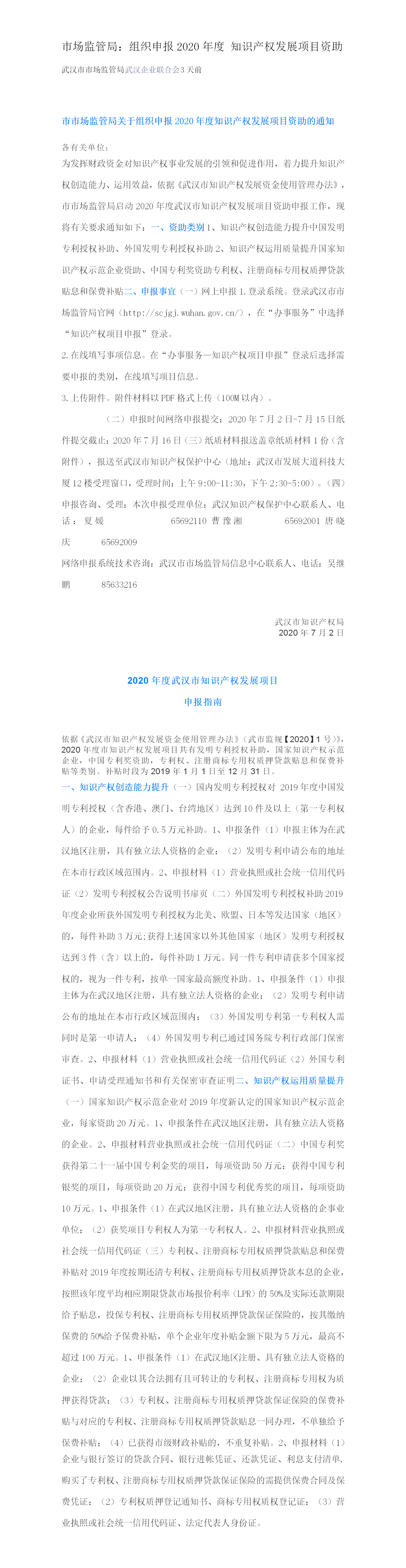 市场监管局:组织申报2020年度 知识产权发展项目资助